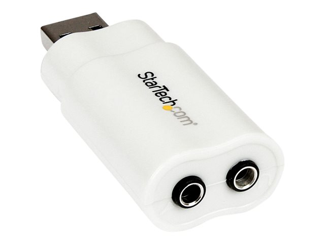 Produktbeskrivning StarTech.com USB to Stereo Audio Adapter Converter - USB stereo Adapter - USB External sound Card - Laptop sound Card (ICUSBAUDIO) - ljudkort - USB 2.0 Typ av enhet Ljudkort Modell Extern Typ av gränssnitt USB 2.0 Dimensioner (BxDxH) 4 cm x 8 cm x 1.5 cm Vikt 54 g Färg Vit Ljudutgångsläge Stereo Systemkrav Microsoft Windows 2000/XP/Vista/7/8/8.1/10, Microsoft Windows Server 2012, Microsoft Windows Server 2012 R2, Microsoft Windows Server 2016, Microsoft Windows Server 2019, Apple MacOS X 10.6 - 10.15, Microsoft Windows 11, Apple macOS 11.0, Apple macOS 12.0, Apple macOS 13.0, Linux 3.5 eller senare, endast Linux LTS-versioner Tillverkarens garanti 2 års garanti Designat för P/N: MU15MMS, MU6MMS -