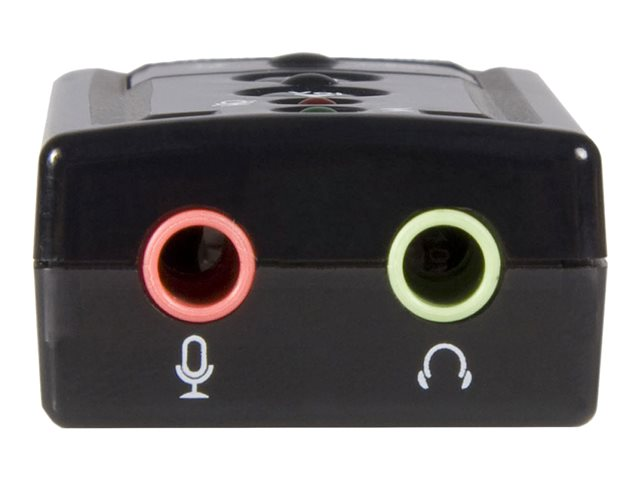Produktbeskrivning StarTech.com Virtual 7.1 USB Stereo Audio Adapter External Sound Card - Sound card - stereo - USB 2.0 - ICUSBAUDIO7 - ljudkort - USB 2.0 Typ av enhet Ljudkort Modell Extern Typ av gränssnitt USB 2.0 Dimensioner (BxDxH) 2.54 cm x 5.7 cm x 1.4 cm Vikt 14 g Färg Svart Ljudutgångsläge Stereo Maskinvarostyrenheter och indikatorer Volymkontroll, dämpningsknapp Systemkrav Linux, Microsoft Windows 2000, Apple MacOS X 10.4, Apple MacOS X 10.6, Apple MacOS X 10.5, Microsoft Windows Vista (32/64 bits), Microsoft Windows 7 (32/64 bits), Microsoft Windows XP (32/64 bits), Apple MacOS X Lion 10.7, Apple OS X 10.8 Mountain Lion, Windows 8 (32/64 bitars), Windows 10 (32/64 bits) Tillverkarens garanti 2 års garanti Designat för P/N: MU15MMS, MU6MMS -