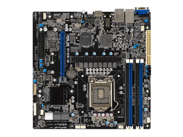 Produktbeskrivning ASUS P12R-M - moderkort - micro ATX - LGA1200-uttag - C252 Typ av produkt Moderkort - micro ATX Kretstyp Intel C252 Processor-socket 1 x LGA1200-uttag Kompatibla processorer Pentium, Xeon E Max. RAM-storlek 128 GB RAM-stöd 4 DIMM-kortplatser - DDR4 ej buffrad Lagringsportar 6 x SATA-600 (RAID), 1 x M.2 USB/FireWire-portar 2 x USB 3.2 Gen 2 + (2 x USB 3.2 Gen 2 + 2 x USB 2.0 via headers) Grafik ASPEED AST2600 Dedicerat videominne 64 MB LAN 2 x Gigabit Ethernet -