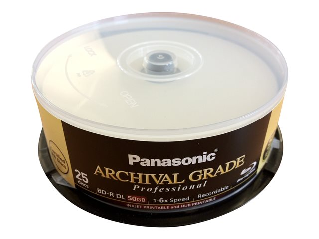 Produktbeskrivning Panasonic ARCHIVAL GRADE Professional - BD-R x 25 - 50 GB - lagringsmedier (paket om 4) Typ Lagringsmedier - BD-R Förpackad kvantitet 4 (specificationerna gällerenskild post) Antal medföljande medier 25 Kapacitet vid okomprimerat format 50 GB Skrivhastighet 6x (max) Egenskaper Yta utskrivbar med bläckstråleskrivare, inre skrivbar plastring Förpackningstyp Spindel Designat för Discproducer PP-100, PP-100AP, PP-100N, PP-100NS, PP-50, PP-50BD -