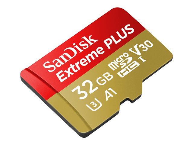 Produktbeskrivning SanDisk Extreme PLUS - flash-minneskort - 32 GB - microSDHC UHS-I Produkttyp Flash-minneskort Formfaktor microSDHC UHS-I minneskort Minneskapacitet 32 GB Hastighet A1 / Video Class V30 / UHS-I U3 Minnesadapter som medföljer Adapter, microSDHC till SD Medföljande programvara SanDisk RescuePRO Deluxe Tillverkarens garanti Begränsad livstidsgaranti (Tyskland, Kanada och regioner som inte godkänner begränsad livstidsgaranti - 30 år) -
