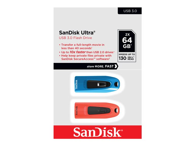 64 GB - USB 3.0 - blå, röd (paket om 2)