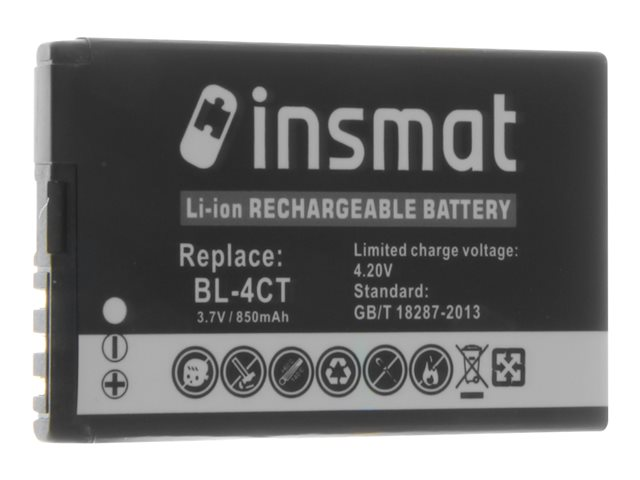 Produktbeskrivning Insmat batteri - Li-Ion Typ av produkt Batteri Batteri Litiumjon - 600 mAh Batteritillverkare Nokia BL-4CT Designat för Nokia 2720 Fold, 5310 XpressMusic, 5630 XpressMusic, 6600 fold, 6700 Slide, 7210 Supernova, 7230, 7310 Supernova, X3-00 -