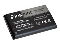 Produktbeskrivning Insmat batteri - Li-Ion Typ av produkt Batteri Utformad för Mobiltelefon Batteri Litiumjon - 850 mAh Batteritillverkare Nokia BL-5B Designat för Nokia 3220, 3230, 5140, 5140i, 5200, 5300 XpressMusic, 5320 XpressMusic, 5500, 6020, 6021, 6060, 6070, 6080, 6120 classic, 6124 classic, 7260, 7360, N80, N90 -