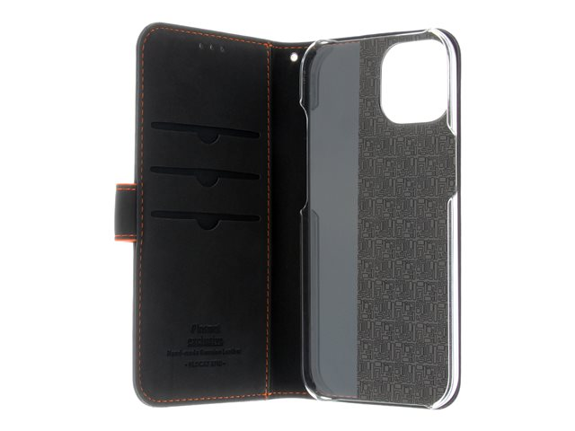 Produktbeskrivning Insmat Exclusive - vikbart fodral för mobiltelefon Typ av produkt Vikbart fodral för mobiltelefon Material Genuint läder, polykarbonat, kartong+papper+aluminiumfolie Färg Svart, orange Designat för Apple iPhone 15 -