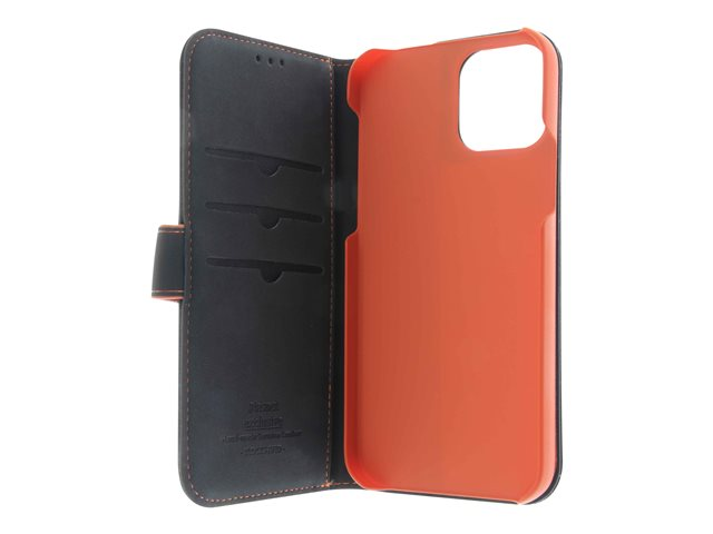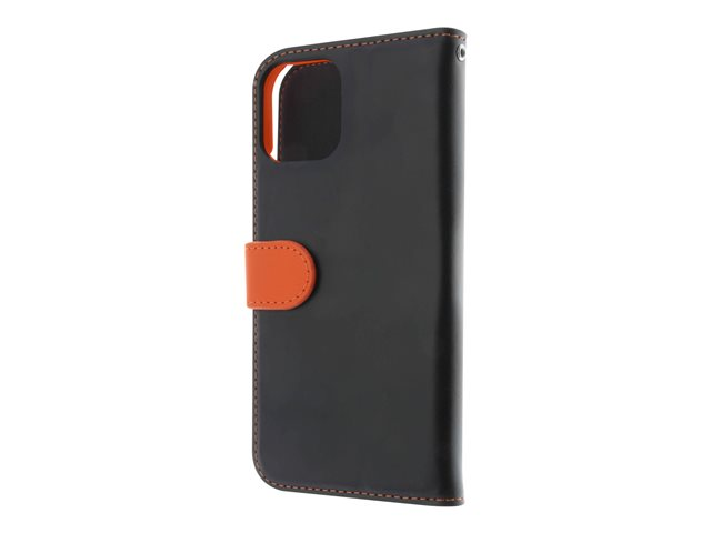 Produktbeskrivning Insmat Exclusive - vikbart fodral för mobiltelefon Typ av produkt Vikbart fodral för mobiltelefon Material Läder, kartong+papper+aluminiumfolie Färg Svart/orange Designat för Apple iPhone 11 -