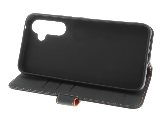 Produktbeskrivning Insmat Flip Case - vikbart fodral för mobiltelefon Typ av produkt Vikbart fodral för mobiltelefon Material Genuint läder, termoplastisk polyuretan (TPU), kartong+papper+aluminiumfolie Färg Svart/orange Designat för Samsung Galaxy A34 5G -