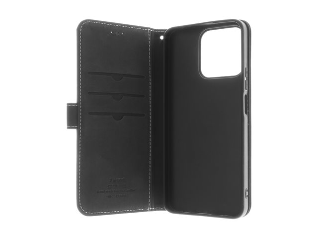 genuint läder, kartong+papper+aluminiumfolie, polykarbonat (PC), bomullssömmar - svart - för Honor 200 Smart