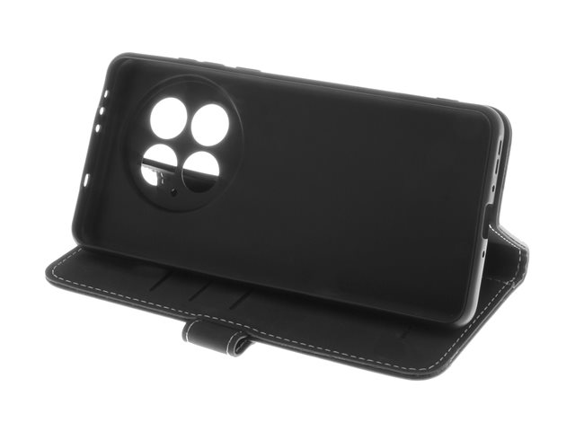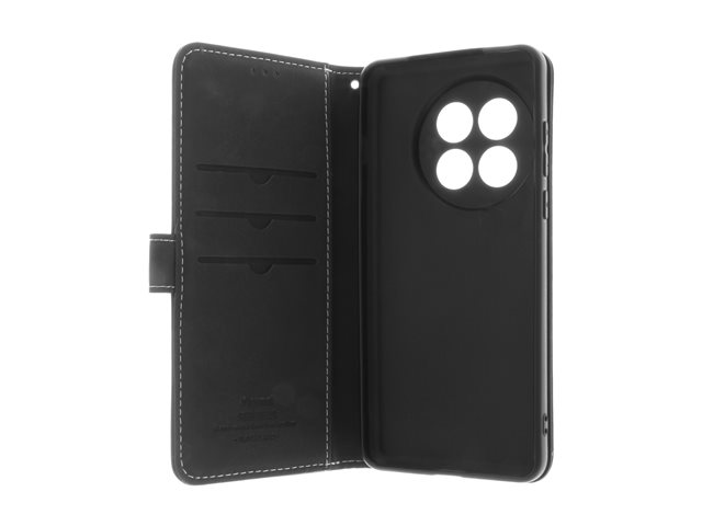 genuint läder, kartong+papper+aluminiumfolie, termoplastisk polyuretan (TPU), bomullssömmar - svart - för OnePlus 13R