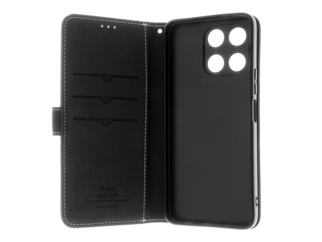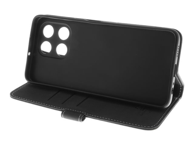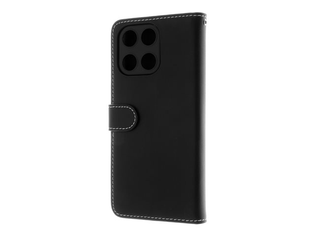 läder, polykarbonat, kartong+papper+aluminiumfolie, bomullssömmar - svart - för Honor X6a