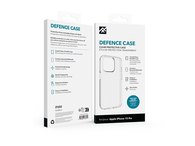 Produktbeskrivning iFrogz Defence - baksidesskydd för mobiltelefon Typ av produkt Baksidesskydd för mobiltelefon Färg CrystalClear Tillverkarens garanti 1 års garanti Designat för Apple iPhone 15 Pro -