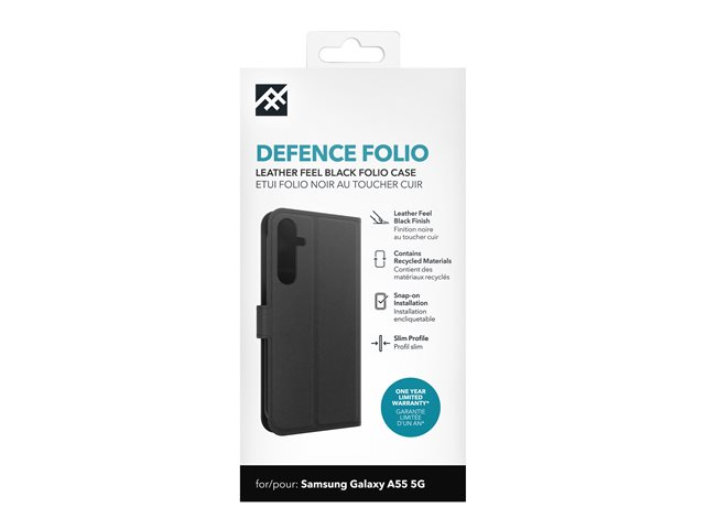 Produktbeskrivning iFrogz Defence - skyddsfodral - vikbart fodral för mobiltelefon Typ av produkt Skyddsfodral vikbart fodral för mobiltelefon Material Läder Färg Svart Tillverkarens garanti 1 års garanti Designat för Samsung Galaxy A55 -