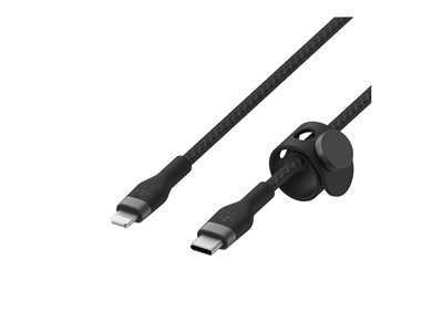 Produktbeskrivning Belkin BoostCharge Lightning-kabel - 2 m Kabel Lightning-kabel Kabellängd 2 m Färg Svart Kontaktdon 24 pin USB-C - hane Kontakt (andra änden) Lightning - hane Egenskaper Flätad -