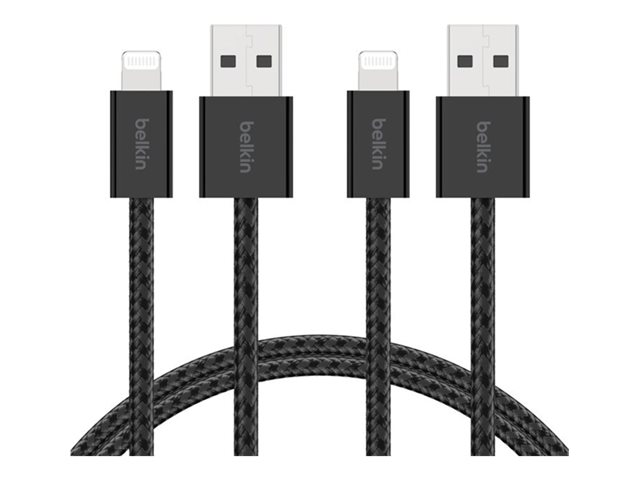 USB typ A hane till Lightning hane - 1.5 m - svart - flätad kabel (paket om 2)