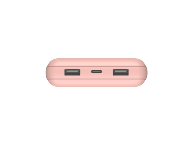 Produktbeskrivning Belkin BoostCharge power bank - USB-C, 2 x USB - 15 Watt Typ av produkt Power bank Utformad för Surfplatta, mobiltelefon Dimensioner (BxDxH) 8 cm x 15.94 cm x 2.276 cm Vikt 508 g Färg Guldrosa Typ av utkontakt Total 3: USB-C, 2 x USB - på kabel: USB-C Nätspänning DC 5 V Tillförd spänning 5 V Max elektrisk ström 3 A Batteri 20000 mAh Effekt 15 Watt Kablar USB-A till USB-C strömkabel - 15.2 cm Tillverkarens garanti 2 års garanti -