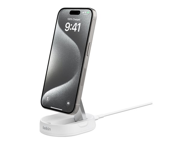 Trådlöst laddställ - magnetisk + växelströmsadapter - 15 Watt - vit