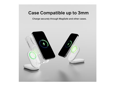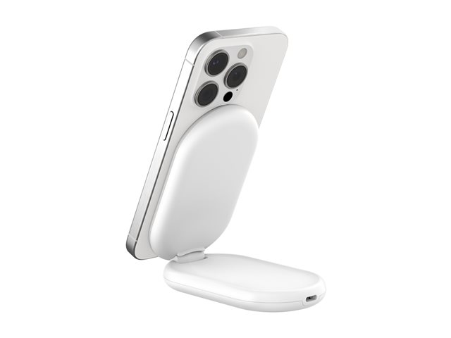 magnetisk, hopfällbar, med Qi2 + växelströmsadapter - 15 Watt - 3 A - Fast Charge, Strömmatning 3.1 - vit