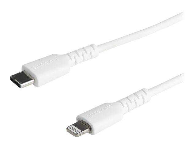 StarTech.com 2m tålig, vitt USB-C till Blixtkabel - Hård, tålig aramifiber USB typ A till Blixtladdare/synkron strömsladd - Apple MFi-certifierad iPad/iPhone 12