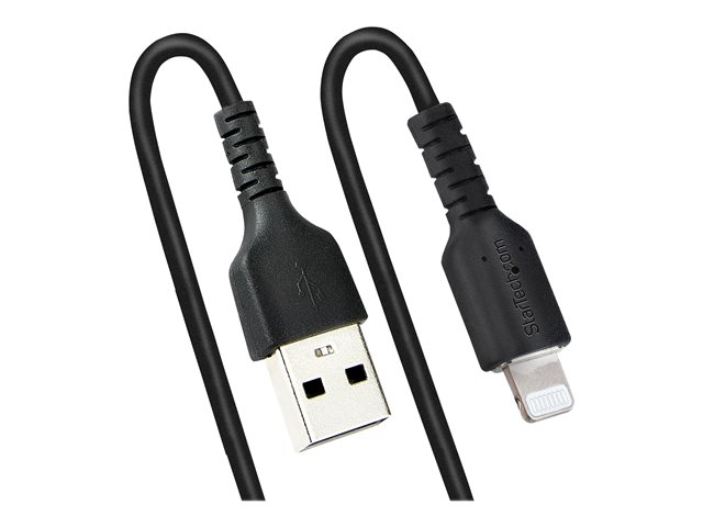 StarTech.com 50 cm USB till Lightning-kabel, MFi-certifierad, iPhone-laddarkabel, svart, TPE-mantel med slitstark aramidfiber, kraftig Lightning-spiralkabel