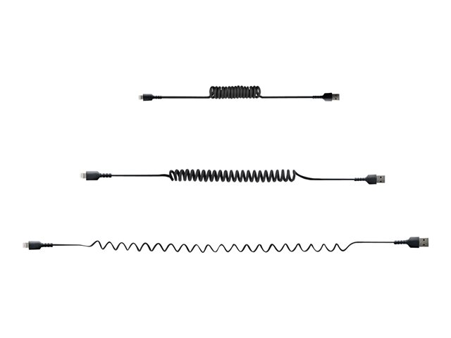 Produktbeskrivning StarTech.com 50 cm USB till Lightning-kabel, MFi-certifierad, iPhone-laddarkabel, svart, TPE-mantel med slitstark aramidfiber, kraftig Lightning-spiralkabel - Lightning-kabel - Lightning / USB - 50 cm Kabel Lightning-kabel - Lightning / USB American Wire Gauge (AWG) 22/32 Kabellängd 50 cm Färg Svart Kontaktdon USB - hane Kontakt (andra änden) Lightning - hane Egenskaper Lindad Tillverkarens garanti 2 års garanti -