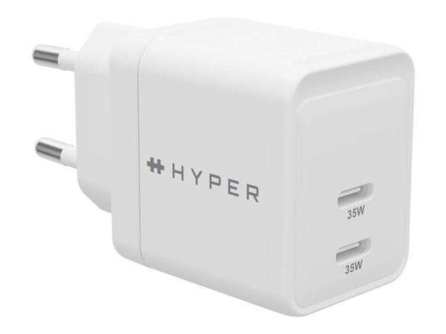 Produktbeskrivning HyperJuice strömadapter - GaN - USB-C - 35 Watt Typ av produkt Strömadapter Utformad för Surfplatta, mobiltelefon, anteckningsbok Dimensioner (BxDxH) 3.5 cm x 7 cm x 10.5 cm Vikt 80 g Färg Vit Lokalisering Europa Typ av utkontakt Total 2: USB-C Snabbladdningsteknik Qualcomm Quick Charge 3.0, Power Delivery 3.0 + PPS Effekt 35 Watt Tillverkarens garanti 2 års garanti -