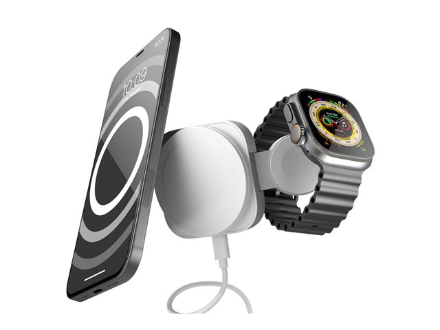 2-i-1 MagSafe + Watch - 20 Watt - på kabel: USB-C - vit - för Apple AirPods with MagSafe Charging Case; AirPods Pro; iPhone 12, 13, 14