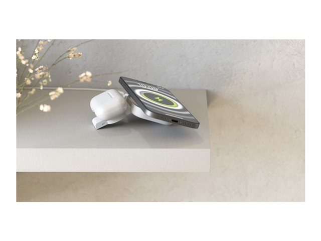 Produktbeskrivning ZENS 2-in-1 trådlös laddningsplatta - 2-i-1 MagSafe + Watch - 20 Watt Typ av produkt Trådlös laddningsplatta Utformad för Mobiltelefon, smartklocka Dimensioner (BxDxH) 5.5 cm x 5.5 cm x 2 cm Vikt 182 g Färg Vit Typ av utkontakt På kabel: USB-C Effekt 20 Watt Strömenhetsinformation - magnetisk trådlös platta - utmatning - 15 W