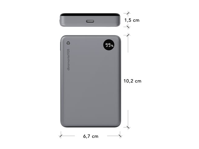 Produktbeskrivning dbramante1928 re-charge power bank - magnetisk, 24 pin USB-C - 20 Watt Typ av produkt Power bank Utformad för Mobiltelefon Dimensioner (BxDxH) 10.2 cm x 1.5 cm x 6.7 cm Vikt 190 g Färg Grå Typ av utkontakt Total 2: magnetisk, 24 pin USB-C Nätspänning 3.85 V Tillförd spänning 5/9/12 V Max elektrisk ström 3 A Trådlös laddning Ja Batteri 10000 mAh - 38.5 Wh Effekt 20 Watt Strömenhetens driftlägen Trådlös laddning - 5/7.5/10/15 W