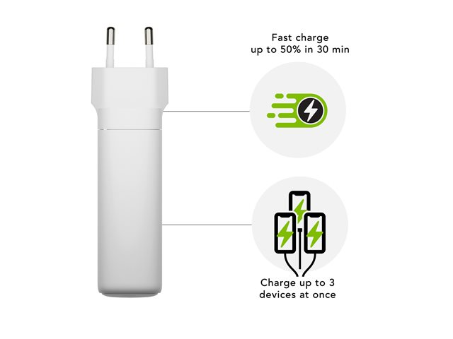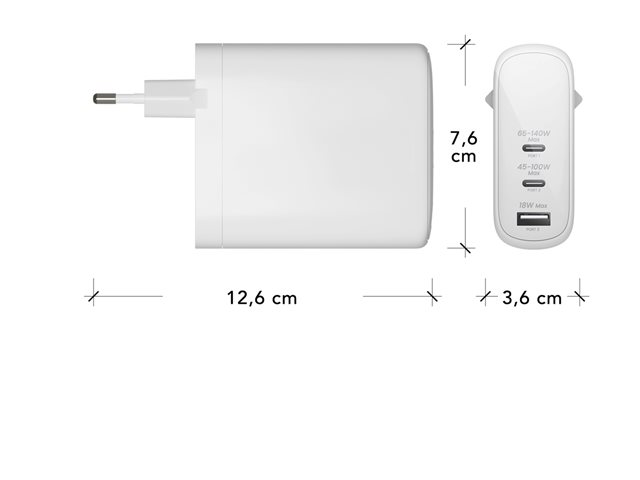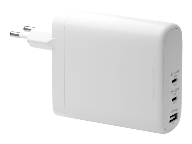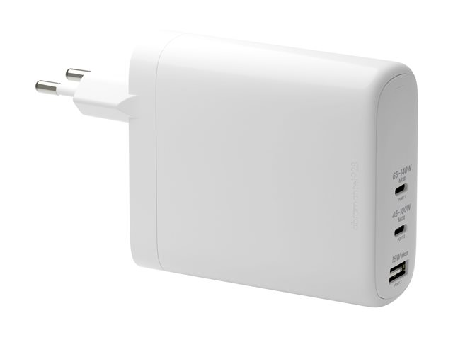 Strömadapter - 140 Watt - Strömmatning 3.1 - 3 utdatakontakter (USB-C, USB) - vit - Europa