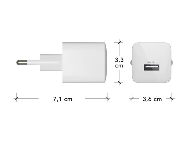 Strömadapter - 18 Watt (USB) - vit - Europa