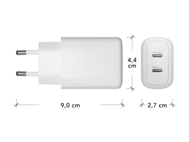 Strömadapter - 25 Watt - 2 utdatakontakter (USB-C) - vit - Europa