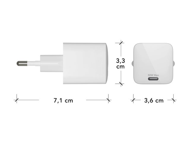 Strömadapter - 30 Watt - PD, QC (USB-C) - vit - Europa