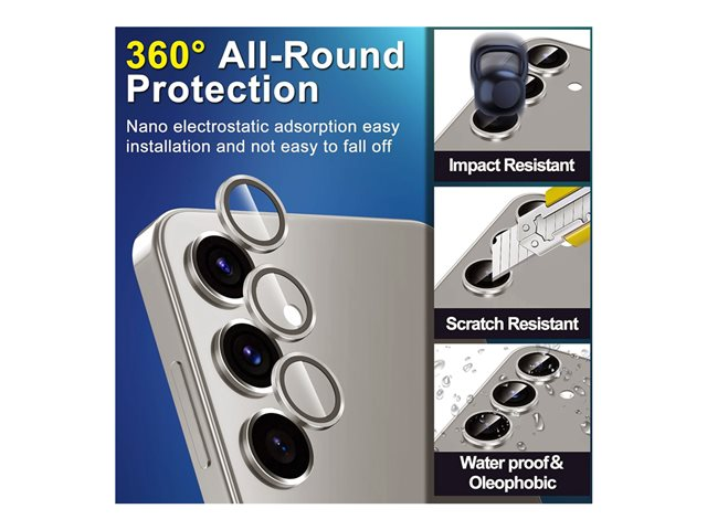 Produktbeskrivning Insmat - linsskydd för mobiltelefon Typ av produkt Linsskydd Avsedd för Mobiltelefon Skydd Reptålig, stöttålig, vattentät, 360° skydd, skadeskydd Beläggning Oleofob Förpacknings innehåll Linsskydd, monteringsplatta Produktmaterial Aluminiumram Färg Silver Designat för Samsung Galaxy S25 -