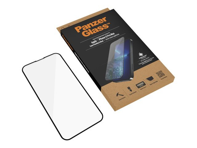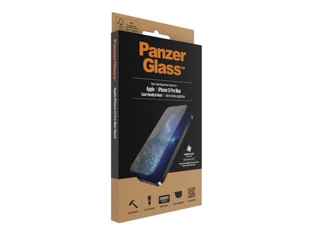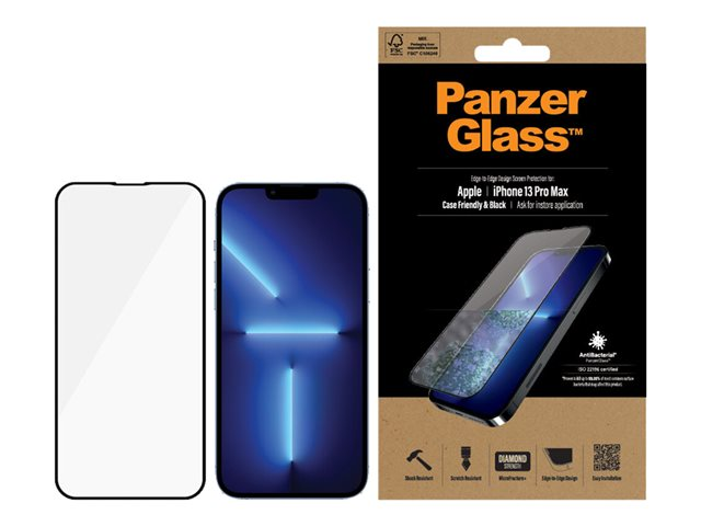 Produktbeskrivning PanzerGlass - skärmskydd för mobiltelefon Typ av produkt Skärmskydd - glas Avsedd för Mobiltelefon Skydd Stötsäker, reptålig, antibakteriell Beläggning Antimikrobiell Produktmaterial Härdat glas Ramfärg Svart Färg Svart, CrystalClear Tillverkarens garanti 30-dagars retur Designat för Apple iPhone 13 Pro Max -