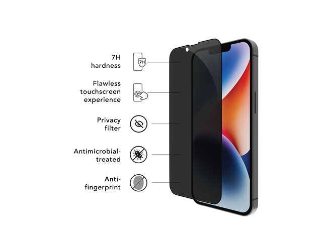 Skärmskydd för mobiltelefon - med sekretessfilter - ramfärg svart - för Apple iPhone 13, 13 Pro, 14, 16e
