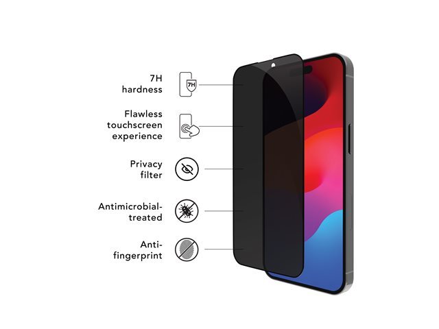 Skärmskydd för mobiltelefon - med sekretessfilter - ramfärg svart - för Apple iPhone 15 Pro