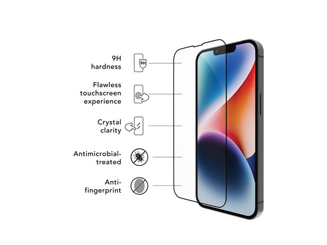 Skärmskydd för mobiltelefon - ramfärg svart - för Apple iPhone 13, 13 Pro, 14, 16e