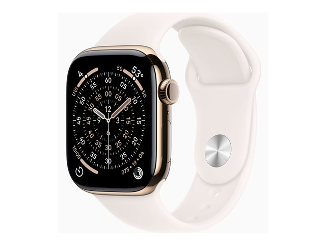 42 mm - guld titan - smart klocka med sportband - fluoroelastomer - lätt rouge - bandstorlek: S/M - 64 GB - Bluetooth, LTE, Wi-Fi 4, UWB - 5G - 34.6 g