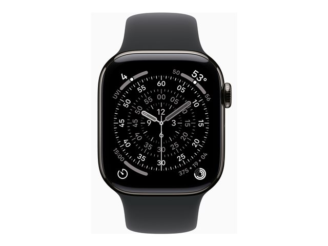42 mm - skiffer titan - smart klocka med sportband - fluoroelastomer - svart - bandstorlek: S/M - 64 GB - Bluetooth, LTE, Wi-Fi 4, UWB - 5G - 34.6 g