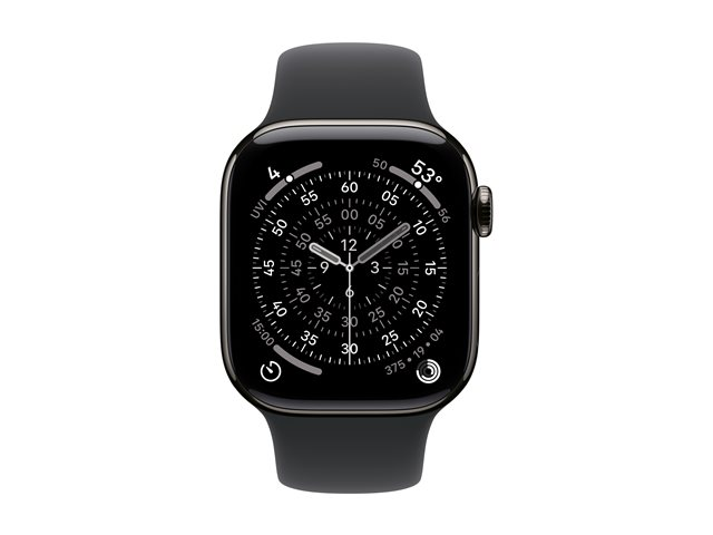 Produktbeskrivning Apple Watch Series 11 (GPS + Cellular) - skiffer titan - smart klocka med sportband - svart - 64 GB Produkttyp Smart klocka Tillverkarens modellnummer A3335 Aktivitet/sport Golf, löpning, simning, skidor, cykling, vandring, promenader, yoga, snowboarding, strength training, elliptisk, multisport, dans, trappgång, pilates, rullstol, intervallträning med hög intensitet (HIIT), utomhusrodd, paddling, roddmaskin, nedkylning, kernträning, tai chi, kickboxning Spårningsdata Distans, tid, brända kalorier, aktivitet, sovaktivitet, hjärtfrekvens, blodsyremättnad, sömnstadier, löptakt, ljudnivå, menstruell cykel, mätvärden för simning, ECG, träningslast, sömnkvalitetspoäng, ägglossningsfasen, steglängd, medvetenhet Anslutning LTE, Wi-Fi 4, UWB, Bluetooth 5G Navigering GPS/GLONASS/Galileo/BeiDou/QZSS-mottagare Bildskärm Retina LTPO3 OLED 374 x 446 pixlar - 326 ppi - safirglass - always-on display Processor Apple S10 Lagring 64 GB Operativsystem WatchOS Boett Rektangulär - 42 mm - 100% återvunnen titan Band Svart - sportband - fluoroelastomer - storlek: M/L - utbytbar Betalningsteknik Apple Pay Intelligent assistent Siri Inmatning Pekskärm, sidoknapp, roterande krona, dubbeltryck, handledsvridningsgest Passar handled med omkrets 150-200 mm Aviseringar Kalender, SMS, E-post, appar, hög och låg hjärtfrekvens, oregelbunden rytm, sömnapné-notifikationer, backtrack, hypertoni Funktioner Samtalshantering, Falldetektering, Nödläge SOS, medicinpåminnelse, sömnapnédetektering, hjärtfrekvenszoner, ljusstyrka: 2 000 nits, Stöd för familjeuppstart, Internationella nödsamtal, Kraschdetektering, brusövervakning, snabbladdning, kör träningsbygge, offline-kartor, roaming stöd Värdenhets-OS som stöds iOS Batteri Laddningsbart litiumjon Batteridriftstid Upp till 24 timmar Dimensioner (BxDxH) 36 mm x 9.7 mm x 42 mm Vikt 34.6 g Specifik absorptionshastighet (SAR) 0.81 W/kg (head)