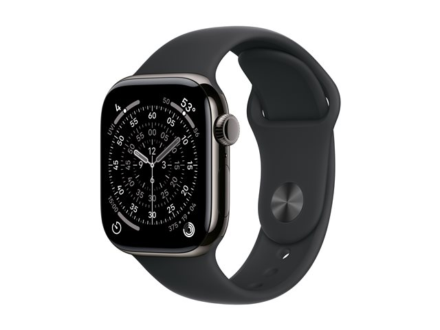 42 mm - skiffer titan - smart klocka med sportband - fluoroelastomer - svart - bandstorlek: M/L - 64 GB - LTE, Wi-Fi 4, UWB, Bluetooth - 5G - 34.6 g