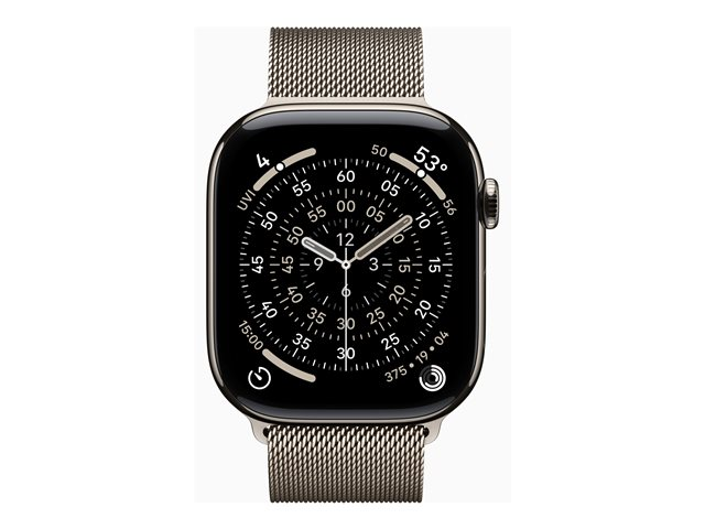 46 mm - naturlig titan - smart klocka med milanesisk loop - nät av rostfritt stål - naturlig - bandstorlek: S/M - 64 GB - Bluetooth, LTE, Wi-Fi 4, UWB - 5G - 43.1 g