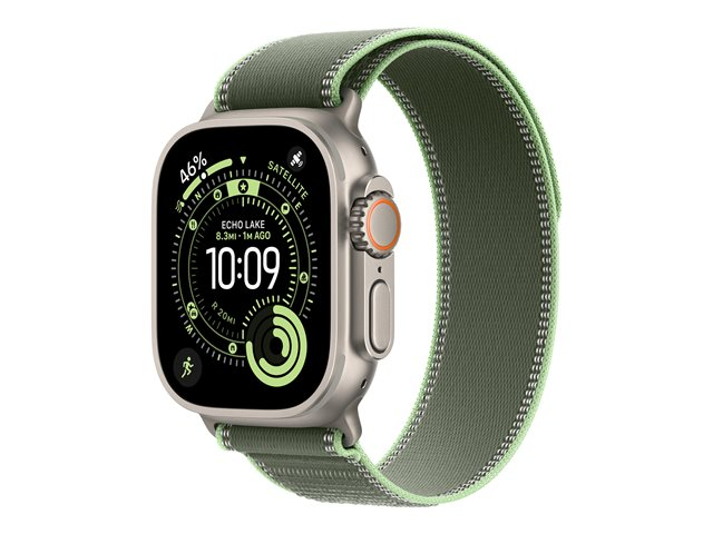 Produktbeskrivning Apple - slinga för smart klocka - 49 mm, naturlig titanfinish Typ av produkt Slinga Avsedd för Smart klocka Kompatibilitet med fallstorlek 44 mm, 45 mm, 46 mm, 49 mm Bandstorlek S/M (passar handleder på 130 - 180 mm) Produktmaterial 100 % återvunnen polyester, 100 % återvunnet spandex, reflekterande garn, 90% återvunnen titan, 60 % återvunnet nylon Färg Grön/neon Tillverkarens garanti 1 års garanti Designat för Watch Edition Series 5, Edition Series 6, Hermès Series 5, Hermès Series 6, Hermès Series 7, Hermès Series 9, Nike SE, Nike Series 5, Nike Series 6, Nike Series 7, Nike+ Series 4, SE, SE 3, Series 10, Series 11, Series 4, Series 5, Series 6, Series 7, Series 8, Series 9, Ultra, Ultra 2, Ultra 3 -