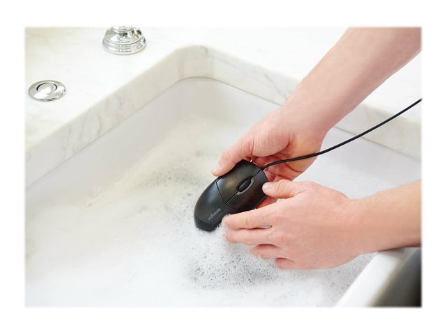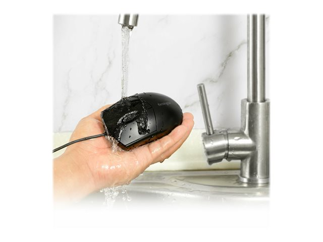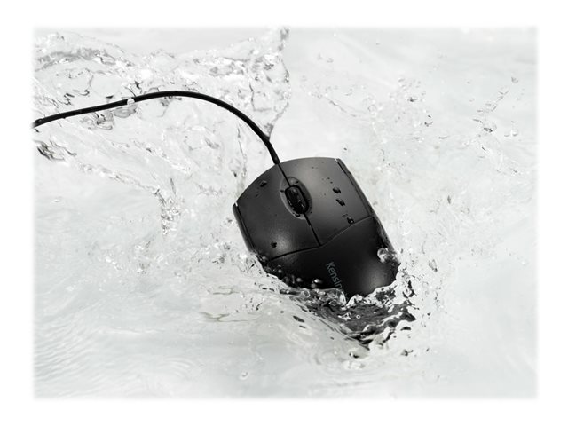 Produktbeskrivning Kensington Pro Fit Washable Wired Mouse - mus - USB Typ av enhet Mus Anslutningsteknik Kabelansluten - USB Inriktning Höger- och vänsterhänta Teknik för rörelsedetektering Optisk Antal knappar 3 Rörelseupplösning 1600 dpi Egenskaper Vattenfast, tvättbar, scrollhjul Tillverkarens garanti 3 års garanti -