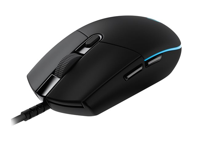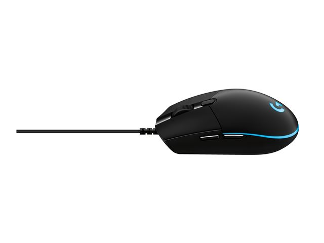 Produktbeskrivning Logitech G Pro (Hero) - mus - USB Typ av enhet Mus Anslutningsteknik Kabelansluten - USB Dimensioner (BxDxH) 6.215 cm x 11.66 cm x 3.82 cm Vikt 83 g Teknik för rörelsedetektering Optisk Antal knappar 6 Rörelseupplösning 16000 dpi Prestanda 1 ms responstid, 40 G maximal acceleration, upp till 400 tum per sekund, sensivitetsomkoppling i realtid 100 - 16.000 dpi, rapporteringshastighet: 1000 Hz Gaming Ja Egenskaper Programmerbara knappar, inbyggt flashminne, 5 profiler, 6 programmerbara knappar, RGB 16,8 miljoners flerfärgsilluminering, DPI-switch, HERO-sensor, mekaniska omkopplare, 50 miljoner klick, Spring Button Tensioning System (SBTS), LIGHTSYNC-teknik -