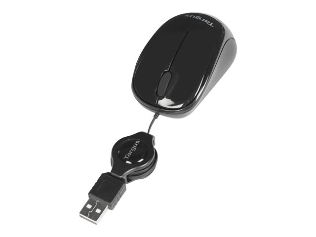 Produktbeskrivning Targus - mus - USB - svart Typ av enhet Mus Anslutningsteknik Kabelansluten - USB Färg Svart Inriktning Höger- och vänsterhänta Dimensioner (BxDxH) 4.5 cm x 8 cm x 2.5 cm Vikt 40 g Lokalisering Europa Teknik för rörelsedetektering Optisk Antal knappar 3 Rörelseupplösning 1000 dpi Egenskaper Blue Trace Technology, indragbar kabel, scrollhjul Kabellängd 76 cm Operativsystem erfordras Microsoft Windows XP / Vista / 7 / 8 / 8.1 / 10, Apple MacOS X 10.4 eller senare Tillverkarens garanti 2 års garanti -