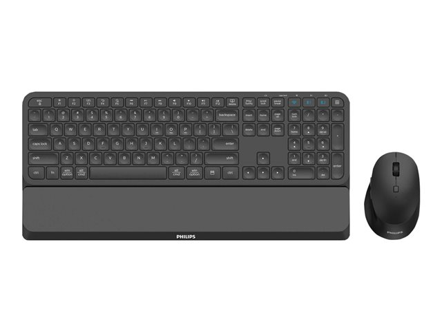 Produktbeskrivning Philips 6000 series SPT6607B - sats med tangentbord och mus - QWERTY Inmatningsenhet Typ av enhet Sats med tangentbord och mus Gränssnitt 2.4 GHz, Bluetooth 3.0, Bluetooth 5.0 Trådlös mottagare Trådlös USB-mottagare Anslutningsteknik Trådlös Lokalisering och layout QWERTY Antal tangenter 110 Numeriskt tangentbord Ja Pekenhet Mus - trådlös - optisk - högerhänt Antal knappar 7 Prestanda Sensivitetsomkoppling i realtid 800/1200/1600/2400/3200 dpi, 3 miljoner klick -
