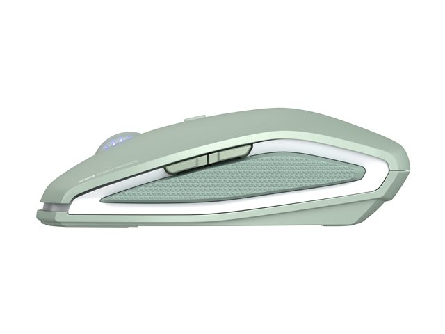 Produktbeskrivning CHERRY GENTIX BT - mus - Bluetooth 4.0 - agavgrön Typ av enhet Mus Anslutningsteknik Trådlös - Bluetooth 4.0 Färg Agavgrön Dimensioner (BxDxH) 7 cm x 11.2 cm x 3.5 cm Vikt 75 g Lokalisering EU Teknik för rörelsedetektering Optisk Antal knappar 7 Rörelseupplösning 2000 dpi Prestanda Sensitivitetsomkoppling i realtid 1 000/2 000 dpi Egenskaper Scrollhjul, gummibeläggning, samtidiga anslutningar för 3 enheter, symmetrisk design Batteri AAA-typ Operativsystem erfordras Android, Apple iOS, Apple MacOS 11 eller senare, Google Chrome OS, Microsoft Windows 10 / 11 Tillverkarens garanti 3 års garanti -