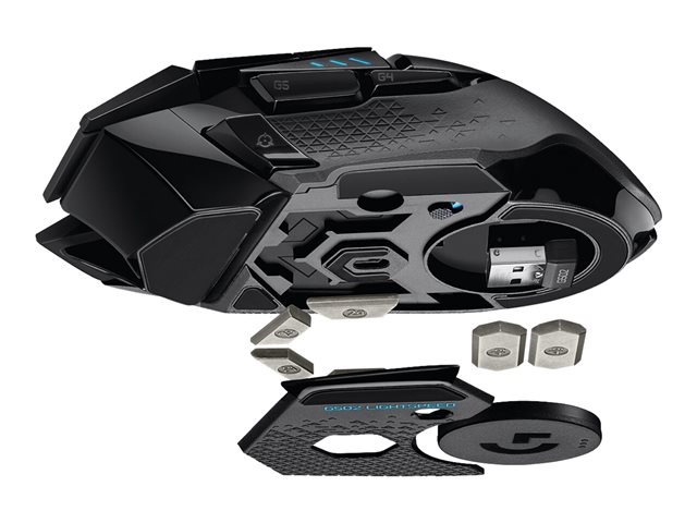 Produktbeskrivning Logitech Gaming Mouse G502 (Hero) - mus - USB, 2.4 GHz Typ av enhet Mus Anslutningsteknik Trådlös, kabelansluten - USB, 2.4 GHz Dimensioner (BxDxH) 7.5 cm x 13.2 cm x 4 cm Vikt 114 g Trådlös mottagare Trådlös USB-mottagare Teknik för rörelsedetektering Optisk Antal knappar 11 Rörelseupplösning 25600 dpi Prestanda 1 ms responstid, 40 G maximal acceleration, upp till 400 tum per sekund, rapporteringshastighet: 1000 Hz, sensivitetsomkoppling i realtid 100 - 25.600 dpi Gaming Ja Egenskaper Scrollhjul, justerbar vikt, inbyggt flashminne, 11 programmerbara knappar, ARM 32-bitars processor, HERO-sensor, blixtsnabb bläddring, LIGHTSYNC-teknik, spänningssystem för mekanisk knapp, POWERPLAY Compatibility, LIGHTSPEED-teknik Operativsystem erfordras Google Chrome OS, Microsoft Windows 7 eller senare, Apple MacOS X 10.11 eller senare Tillverkarens garanti 2 års garanti -