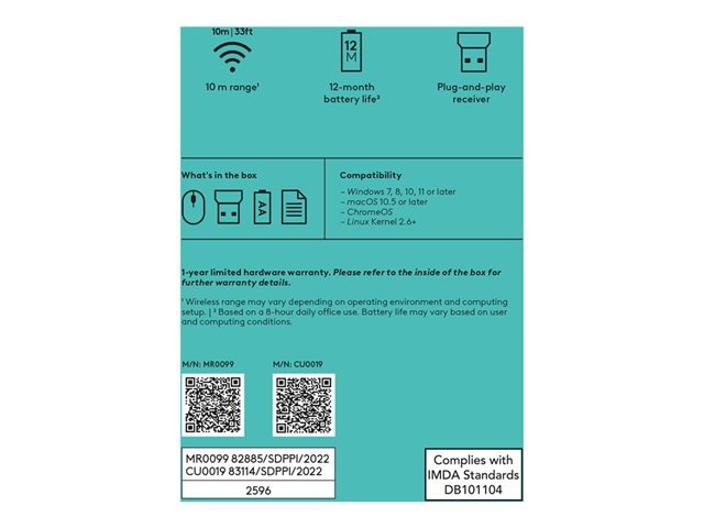 Produktbeskrivning Logitech M171 - mus - 2.4 GHz - blå/grå Typ av enhet Mus Anslutningsteknik Trådlös - 2.4 GHz Färg Blå/grå Inriktning Höger- och vänsterhänta Dimensioner (BxDxH) 6.15 cm x 9.77 cm x 3.52 cm Vikt 70.5 g Trådlös mottagare Trådlös USB-mottagare Teknik för rörelsedetektering Optisk Antal knappar 3 Rörelseupplösning 1000 dpi Egenskaper Scrollhjul, på-/avströmbrytare, dubbelhandsutformning Batteri AA-typ Operativsystem erfordras Google Chrome OS, Apple MacOS 10.8 eller senare, Linux Kernel 2.6 eller senare, Windows 10 / 11 eller senare Återvunnet produktinnehåll 38 % - tillverkad av återvunnen konsumentplast Tillverkarens garanti 2 års garanti -